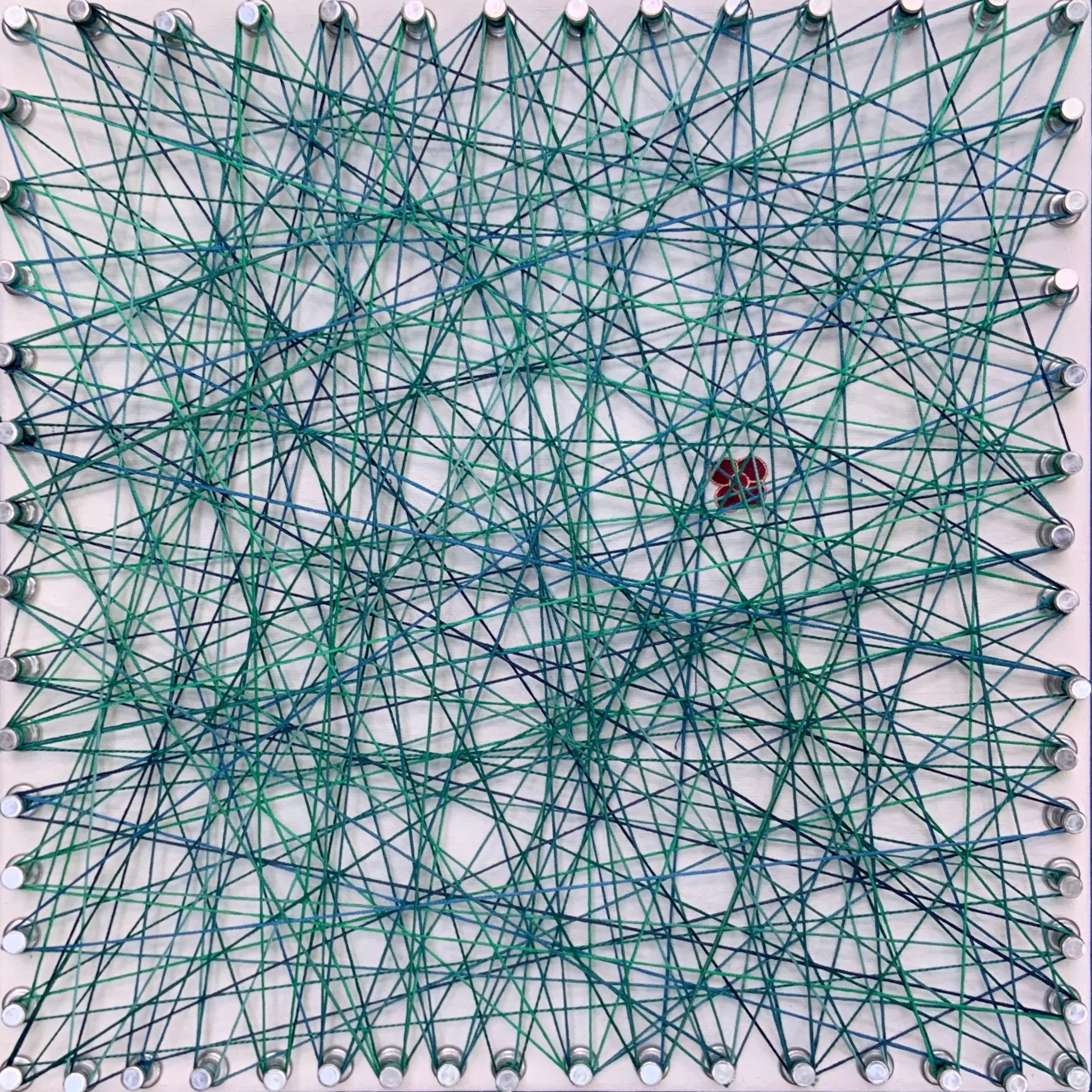 I had tried to get into embroidery. I had gotten the embroidery thread and had some hoops and stuff. I ended up doing a piece and then getting sidetracked by other stuff. Then I figured out that the embroidery hoops were really useful for drawing big circles for making Dungeons and Dragons maps! So I took all my embroidery hoops apart! I had all this thread and I don’t think I’d ever woven before. My mom is a big knitter, so I have the “fabric gene”, we’ll call it. I at least knew enough to know that I could get the movement that I wanted out of it and have those layers of depth. After I did it, one of the people in the house with me was trying to figure out which was the last thread that I placed. I said, “Oh no, I like did ten of them all at once and I have many different layers.” He was like, “Oh, you bastard!” I told him, “I don’t even know which is the last one I placed. Good luck trying to figure that out!”